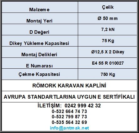 40 MM BORUYA 750 KG' LIK RÖMORK KARAVAN KAPLİNİ